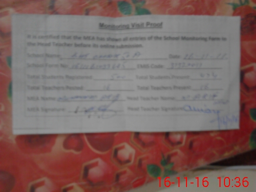 | Attendance Register | Head Teacher | MEA with School | Visit Proof |