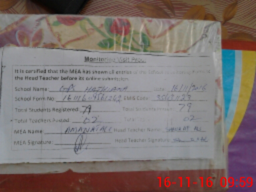 | Certified that this School was Inspected by the Undersigned MEA/DMO Today and the Information Stated Above is as Per Record. | |||||