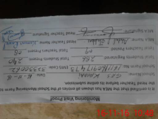 | Attendance Register | Head Teacher | MEA with School | Visit Proof |