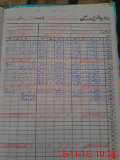 | CNIC | Full Name | Designation | R/C | Absence During Last Calender Month |