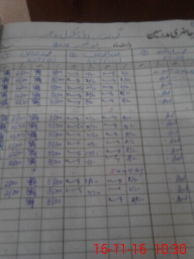 | CNIC | Full Name | Designation | R/C | Absence During Last Calender Month |