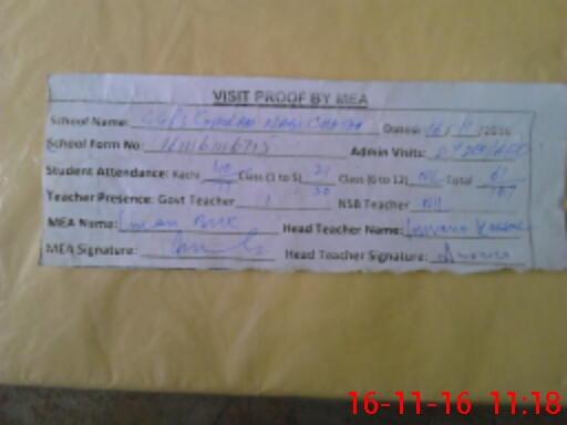 | Attendance Register | Head Teacher | MEA with School | Visit Proof |