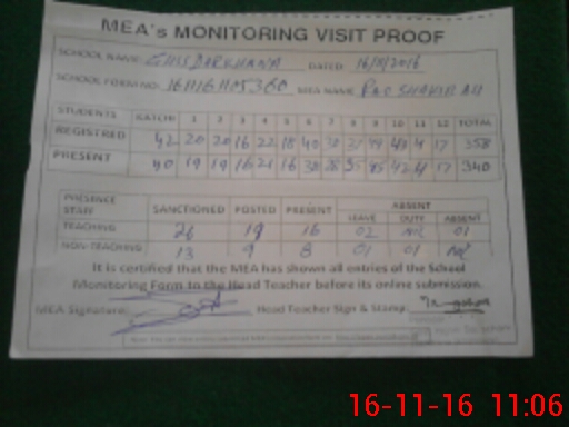 | Certified that this School was Inspected by the Undersigned MEA/DMO Today and the Information Stated Above is as Per Record. | |||||