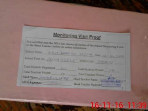 | Attendance Register | Head Teacher | MEA with School | Visit Proof |