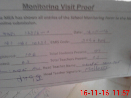 | Attendance Register | Head Teacher | MEA with School | Visit Proof |