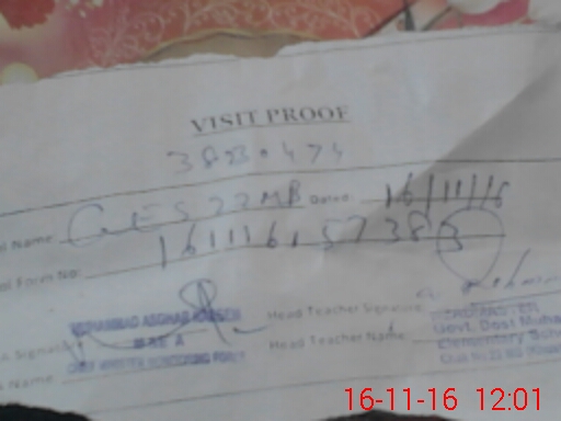 | EMIS Code: 38230474 | Name of School: GES DOST MUHAMMAD CHAK NO. 22 MB | |||