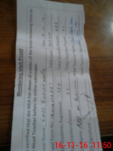 | Attendance Register | Head Teacher | MEA with School | Visit Proof |