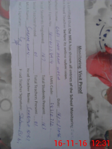 | Certified that this School was Inspected by the Undersigned MEA/DMO Today and the Information Stated Above is as Per Record. | |||||