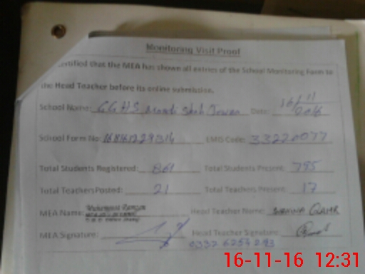 | Name: SH**** QA**** Designation: (School Headmaster's/Headmistress's) SST Phone/Cell Number: 03**** |