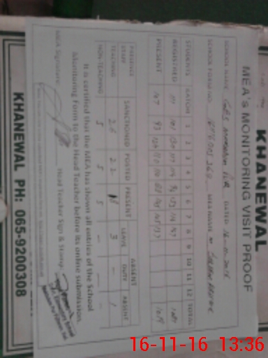 | EMIS Code: 36420062 | Name of School: GES MAKHDOOM PUR, KHANEWAL | |||