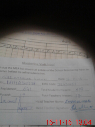 | Certified that this School was Inspected by the Undersigned MEA/DMO Today and the Information Stated Above is as Per Record. | |||||