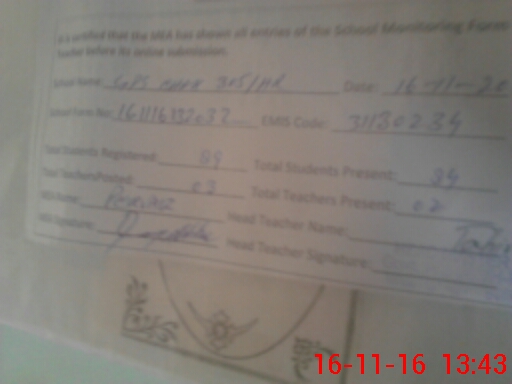 | Name: TA**** MU**** Designation: (School Headmaster's/Headmistress's) PTC/JV Phone/Cell Number: 03**** |