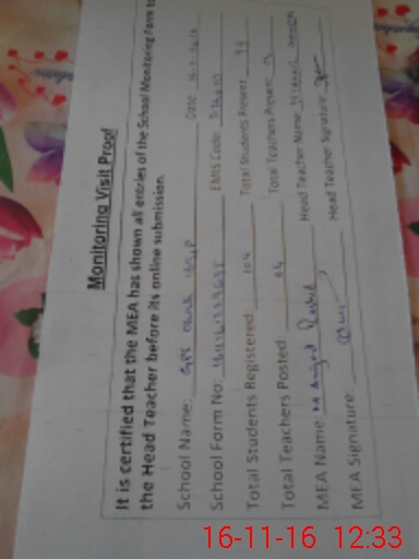 | Certified that this School was Inspected by the Undersigned MEA/DMO Today and the Information Stated Above is as Per Record. | |||||