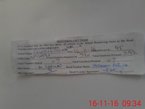 | Attendance Register | Head Teacher | MEA with School | Visit Proof |
