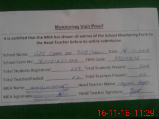| Certified that this School was Inspected by the Undersigned MEA/DMO Today and the Information Stated Above is as Per Record. | |||||