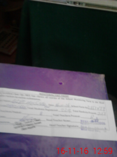| Attendance Register | Head Teacher | MEA with School | Visit Proof |