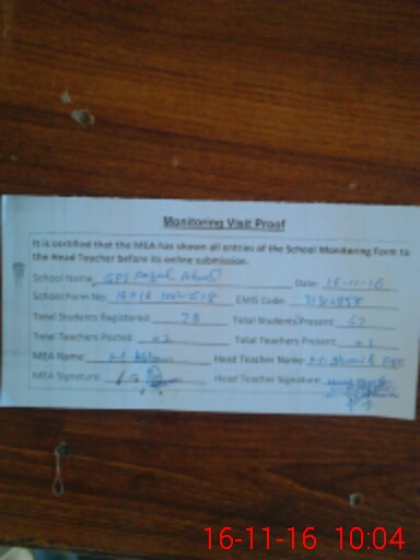 | Attendance Register | Head Teacher | MEA with School | Visit Proof |