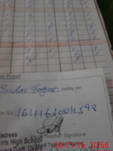 | Name: Uz**** Ba**** Designation: (School Headmaster's/Headmistress's) SST I/C Headmaster Phone/Cell Number: 03**** |