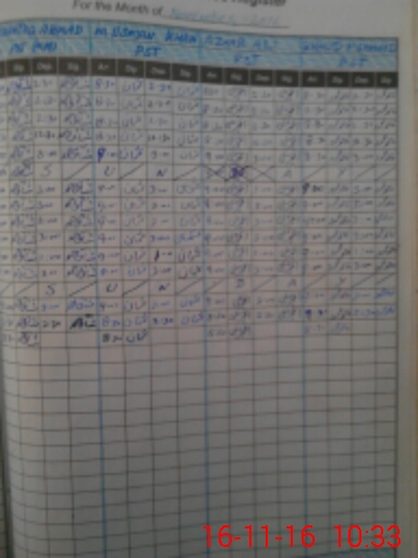 | CNIC | Full Name | Designation | R/C | Absence During Last Calender Month |