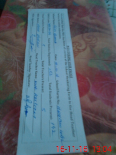 | Attendance Register | Head Teacher | MEA with School | Visit Proof |