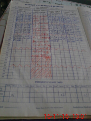 | CNIC | Full Name | Designation | R/C | Absence During Last Calender Month |