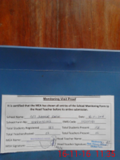 | Attendance Register | Head Teacher | MEA with School | Visit Proof |