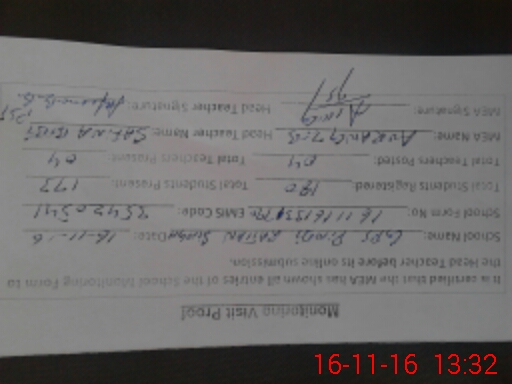 | Certified that this School was Inspected by the Undersigned MEA/DMO Today and the Information Stated Above is as Per Record. | |||||