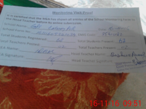 | Certified that this School was Inspected by the Undersigned MEA/DMO Today and the Information Stated Above is as Per Record. | |||||