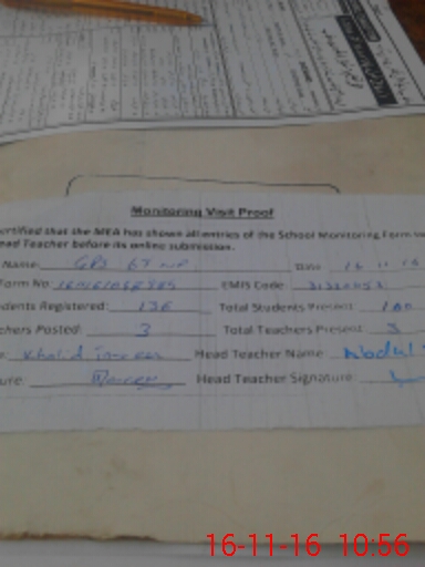 | Attendance Register | Head Teacher | MEA with School | Visit Proof |