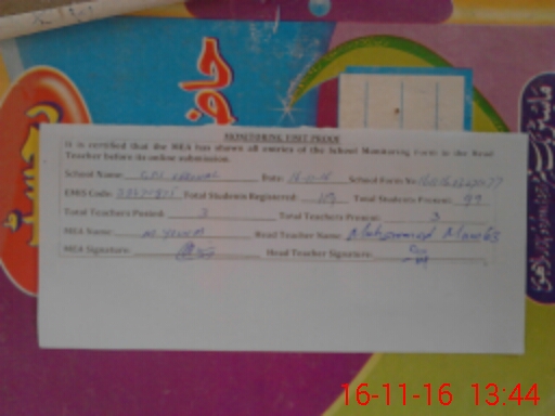 | Attendance Register | Head Teacher | MEA with School | Visit Proof |