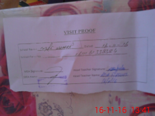 | Attendance Register | Head Teacher | MEA with School | Visit Proof |