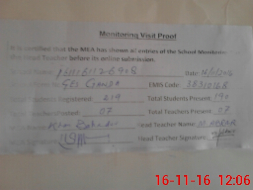 | EMIS Code: 38310168 | Name of School: GHS GANDA KHEL | |||