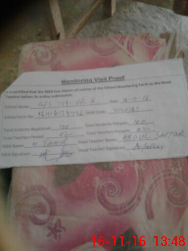 | Name: AB**** SA**** Designation: (School Headmaster's/Headmistress's) PTC Phone/Cell Number: 03**** |