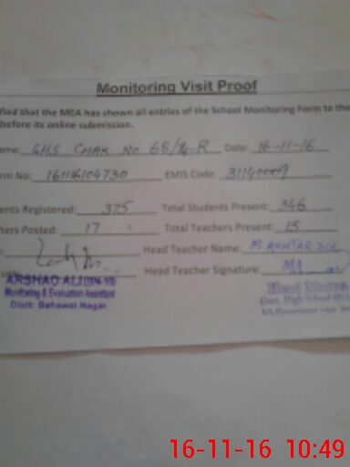 | EMIS Code: 31140009 | Name of School: GHS CHAK 68/4-R | |||