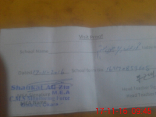 | Attendance Register | Head Teacher | MEA with School | Visit Proof |