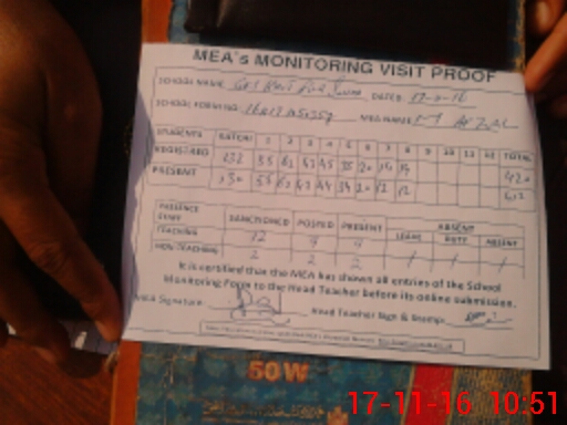 | Attendance Register | Head Teacher | MEA with School | Visit Proof |