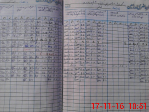 | CNIC | Full Name | Designation | R/C | Absence During Last Calender Month |