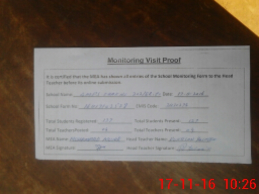 | Attendance Register | Head Teacher | MEA with School | Visit Proof |