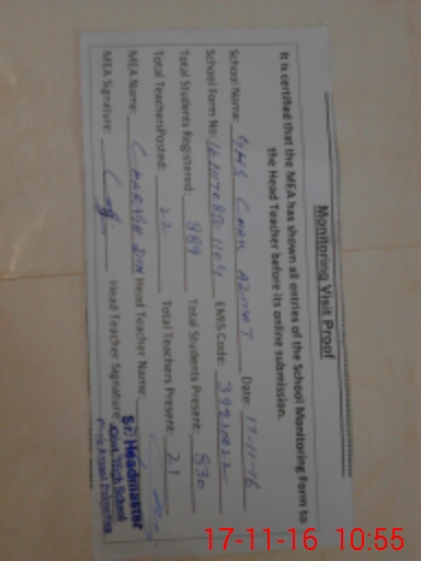 | Certified that this School was Inspected by the Undersigned MEA/DMO Today and the Information Stated Above is as Per Record. | |||||