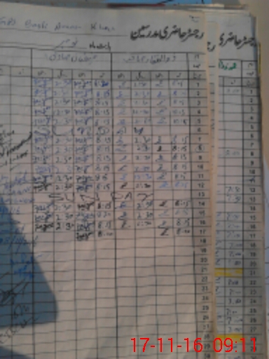 | CNIC | Full Name | Designation | R/C | Absence During Last Calender Month |