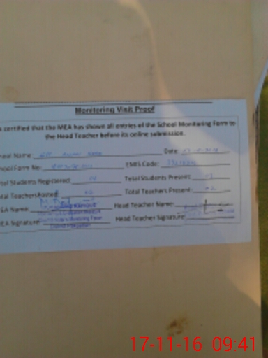 | Attendance Register | Head Teacher | MEA with School | Visit Proof |