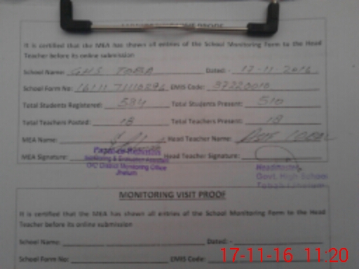 | EMIS Code: 37220010 | Name of School: GHS TOBAH | |||