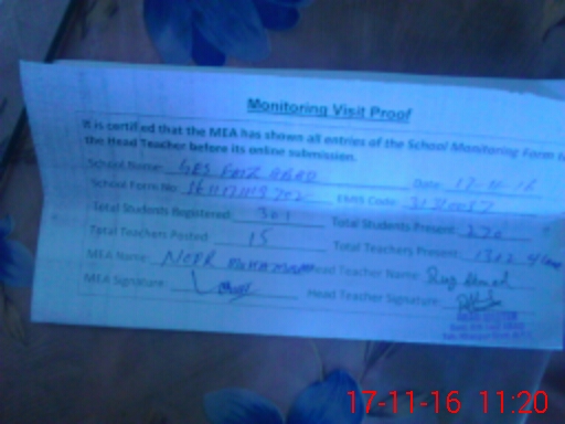 | EMIS Code: 31310037 | Name of School: GES FAIZ ABAD KHANPUR | |||