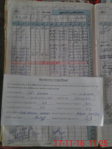 | Attendance Register | Head Teacher | MEA with School | Visit Proof |
