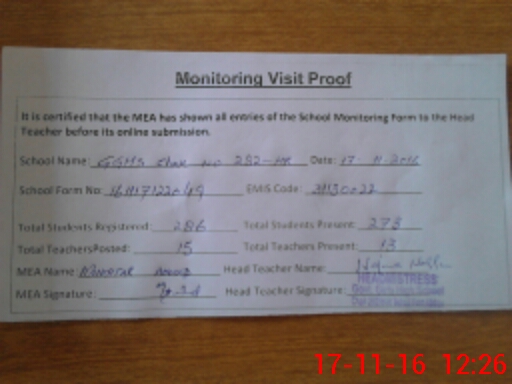 | Certified that this School was Inspected by the Undersigned MEA/DMO Today and the Information Stated Above is as Per Record. | |||||