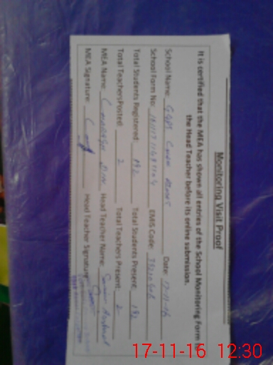 | Attendance Register | Head Teacher | MEA with School | Visit Proof |