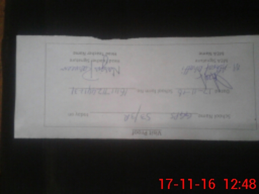 | School Visited by School Health & Nutrition Supervisor (No. of Visits) | 1 | Name1: | ADEEM GILL | Name2: | |