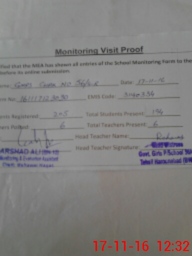 | EMIS Code: 31140334 | Name of School: GMPS CHAK NO. 56/4-R | |||