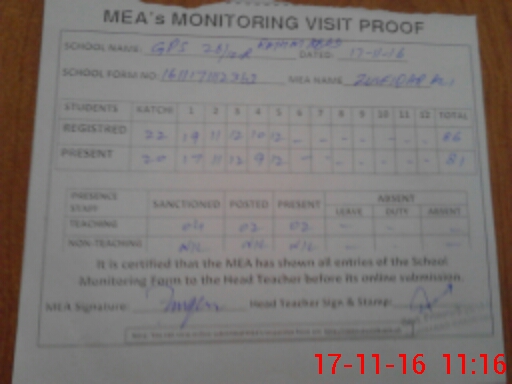 | Attendance Register | Head Teacher | MEA with School | Visit Proof |