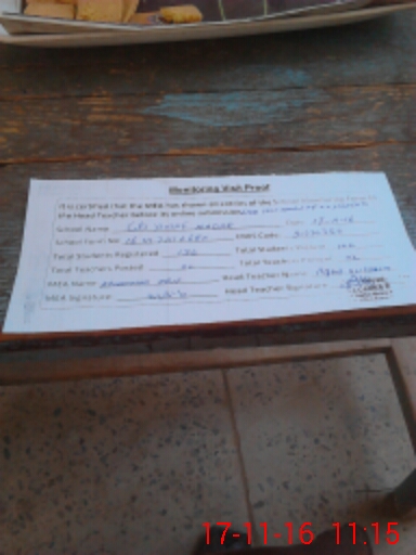 | Attendance Register | Head Teacher | MEA with School | Visit Proof |